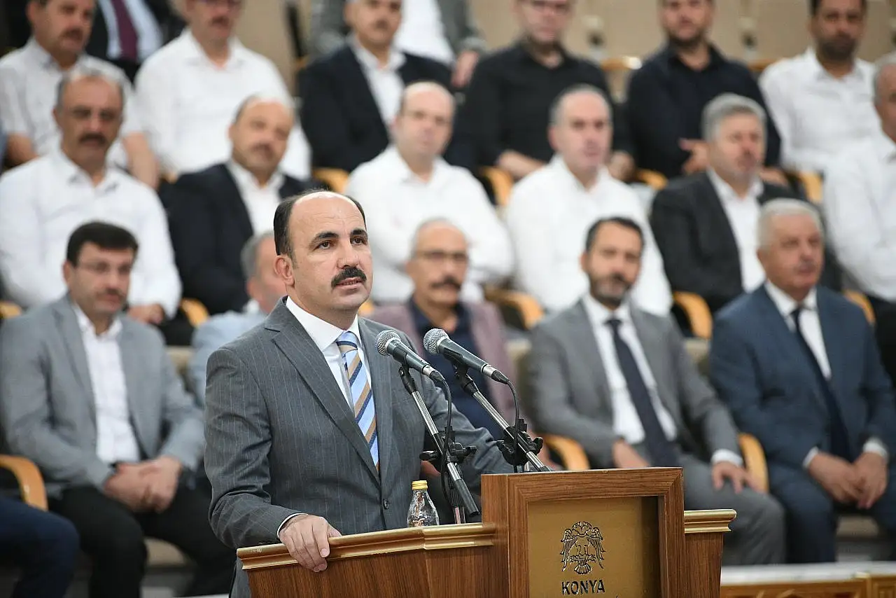 Konya Büyükşehir Belediyesi Mevlana Kültür Merkezi'nde düzenlenen programda konuşan Başkan Altay, Konya'nın huzur içerisinde bir bayram geçirmesini sağlayan tüm Büyükşehir Belediyesi ve KOSKİ çalışanlarına teşekkür etti.'BİZ BURADA HUZUR İÇİNDE BAYRAM YAŞ