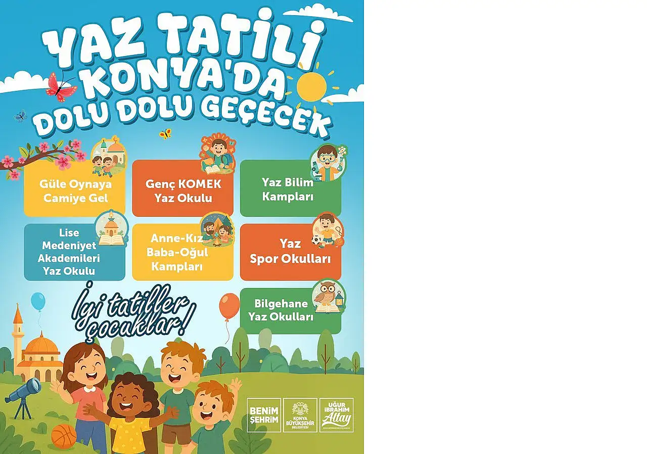 Dün çalan son zil sesi ile öğrencilerin 3 aylık yaz tatili başladı. Bütün bir senenin yorgunluğu atmak için beklenen tatilde 3 ay boyunca evde oturmak isteyemeyen ve kendini geliştirmek isteyen öğrenciler için Konya Büyükşehir Belediye Başkanı Uğur İbrahim Altay sosyal medya hesabından çocukların yaz tatilinde yapabilecekleri etkinlikleri paylaştı.