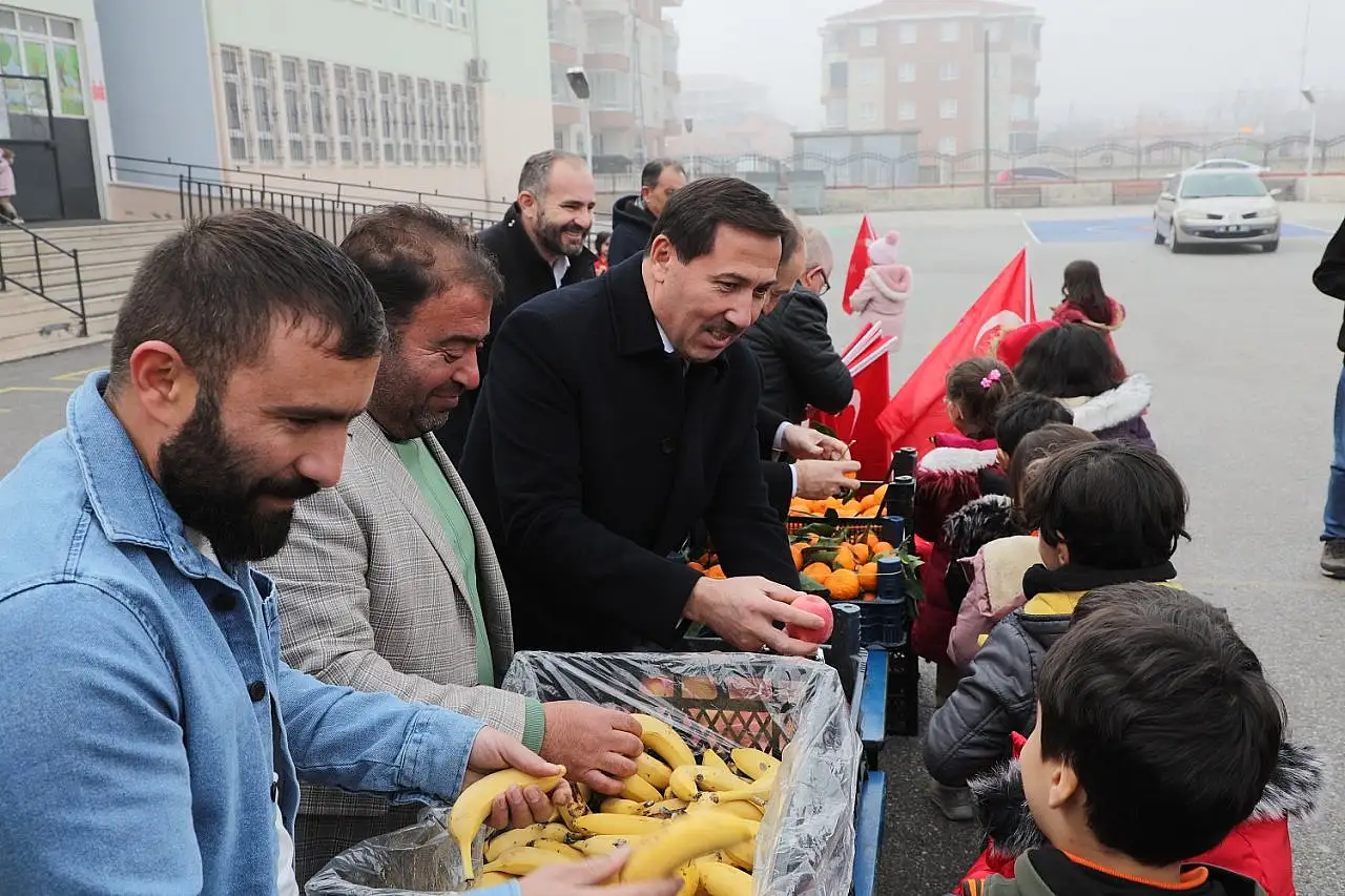 Karatay Belediye Başkan Hasan Kılca da, Karatay İlçe Milli Eğitim Müdürü Turan Kayacılar ve Konya Pazarcılar Odası Başkanı Murat Petek ile birlikte okulları ziyaret ederek öğrencilere meyve dağıttı.