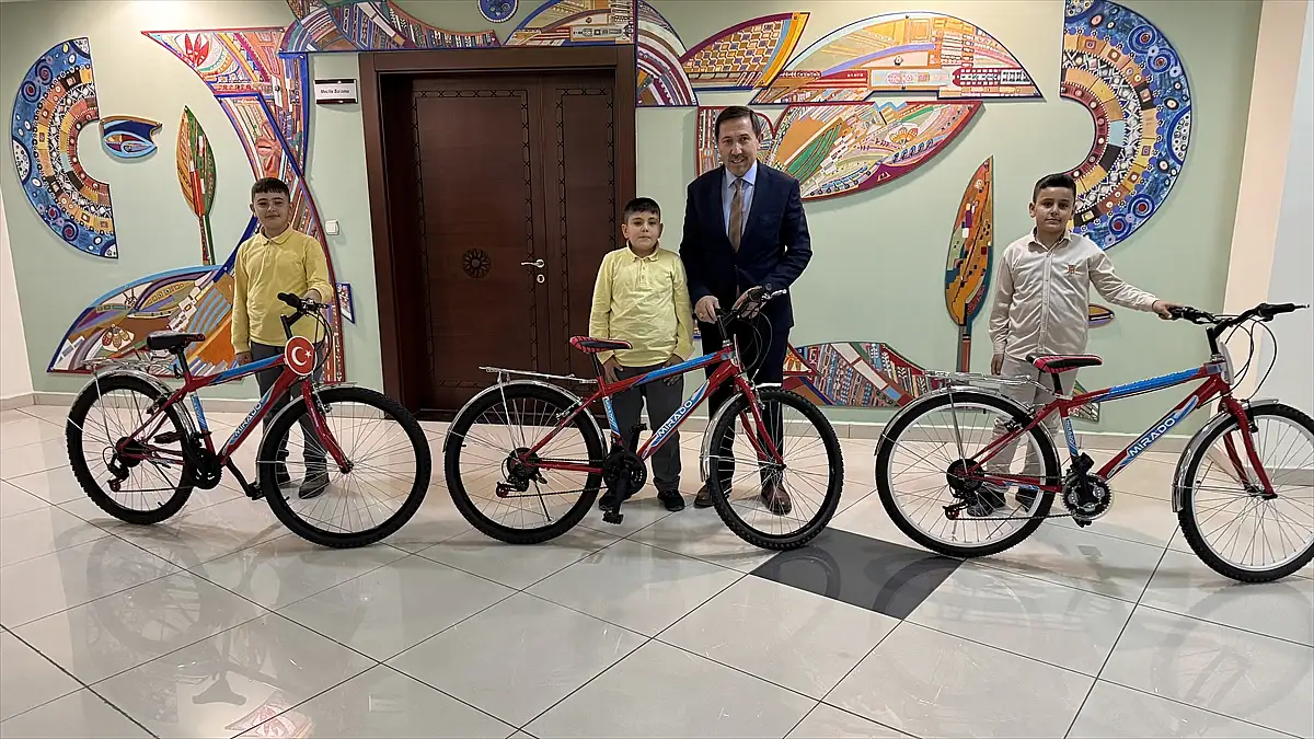 Karatay Belediye Başkanı Hasan Kılca, öğrencileri makamında kabul ederek bisiklet ve kitap hediye etti.