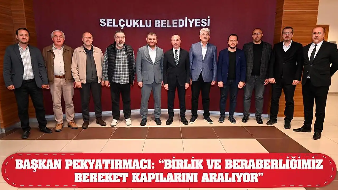 Ziyaretten duyduğu memnuniyeti dile getiren Selçuklu Belediye Başkanı Ahmet Pekyatırmacı da, “Bunu hep dillendiriyoruz, söylerken de gurur duyuyoruz; Konya birlik ve beraberlik ruhundan aldığı güçle büyük kazanımlar elde ediyor. Şehrin birlikteliği bereketin kapılarını aralıyor. Yeni dönemde de inşallah gerek belediyelerimiz, gerek kamu kurum ve kuruluşlarımız, gerek STK’larımız ve gerekse de şehrimizin en önemli değerlerinden biri olan medyamız ile birlikte Konya için var gücümüzle çalışmaya devam edeceğiz. Şunu çok iyi biliyoruz ki yaptığımız bir hizmeti duyuramadığımız sürece o hizmeti sadece yapmış oluyoruz. Hizmet halk için yapılır. Halka hizmetlerin duyurulmasında da Konya medyamızın üstlendiği misyon çok önemlidir. Şehre yaptığımız her bir dokunuşta sizlerin de katkısı bulunuyor. Bu katkılarınızdan dolayı ben de sizlere teşekkürlerimi iletiyorum” ifadelerini kullandı.