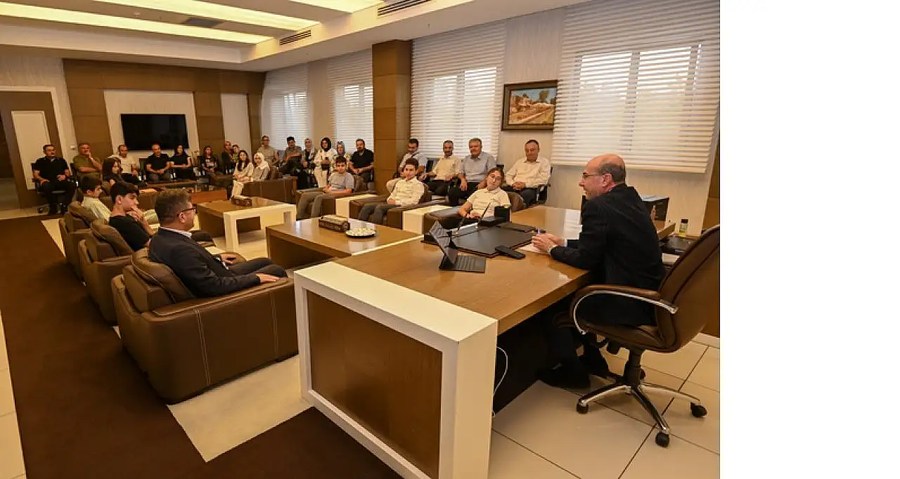 Selçuklu'da LGS'den 500 tam puan alarak Türkiye birincisi olan öğrenciler, kazandıkları başarının ardından Selçuklu Belediye Başkanı Ahmet Pekyatırmacı'yı ziyaret etti.Tüm soruları doğru cevaplayarak şehre büyük bir gurur yaşatan öğrencileri misafir eden