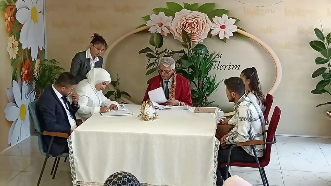 Konya'nın Hüyük ilçesinin Çamlıca Mahallesi'nde Hasan Kütük ve Yasemin Yıldız çiftinin nikah töreni için, 31 Mart seçim çalışmaları sırasında seçimlerden sonra çifte yardımcı olma sözü veren Hüyük Belediye Başkanı Sadık Sefer, seçim sonrası nikah cübbesi