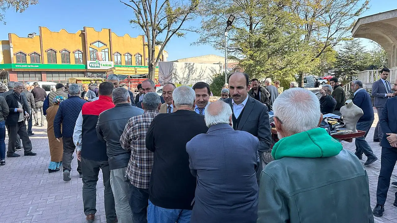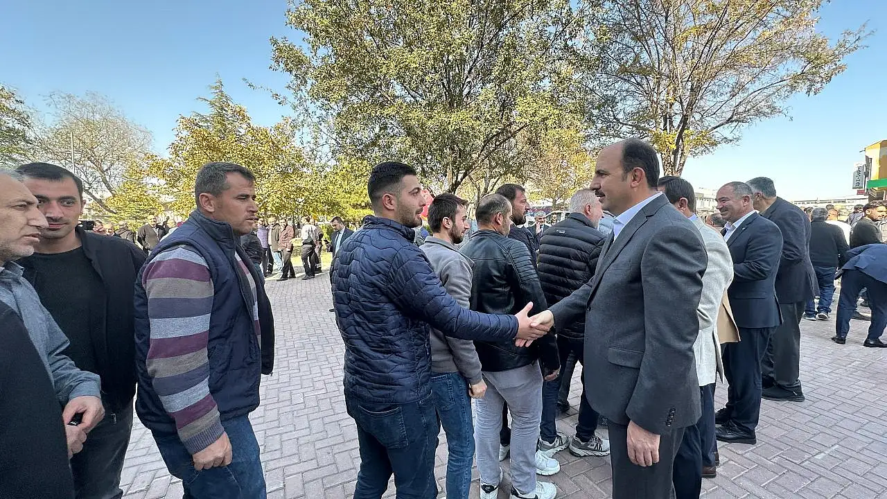 Başkan Altay; Karatay Belediye Başkanı Hasan Kılca, Meram Belediye Başkanı Mustafa Kavuş, AK Parti Karatay İlçe Başkanı Mehmet Genç ve Konya Ticaret Borsası (KTB) Yönetim Kurulu Başkanı Hüseyin Çevik ile birlikte Büyük Buğday Pazarı Camii’nde Cuma namazı sonrası bölge esnafı ve vatandaşların mübarek Cumasını tebrik etti.