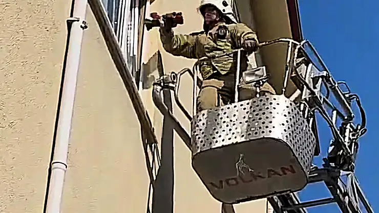 Merdiven yardımıyla balkona ulaşan itfaiye ekipleri, camı kırarak içeri girdi. Evde yapılan aramada şahıs lavaboda baygın halde bulundu. Sağlık ekiplerinin ilk müdahalesinin ardından şahsın rahatsızlanarak fenalaştığı belirlendi.