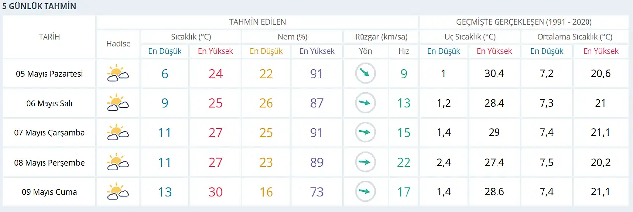 Meteoroloji 8. Bölge Müdürlüğü, tarafından yapılan son tahmine göre Konya'da en düşük ve en yüksek sıcaklık dereceleri ise şöyle olacak:
