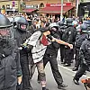 Göstericiler Kottbusser Tor metro istasyonuna yaklaştığında polis, göstericilere sert müdahalede bulundu. Bu sırada çok sayıda göstericiyi gözaltına alan polisin sert müdahalesi nedeniyle yaralananlar oldu.