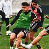 Diğer futbolcuların ısınma koşuları ve minyatür kale çalışmasıyla başladıkları idman, dar alanda oynanan çift kale maçla tamamlandı.
