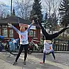Konya'nın Beyşehir ilçesi, dünya turu yapan bisiklet tutkunu ikilinin akrobatik gösterilerine sahne oldu.