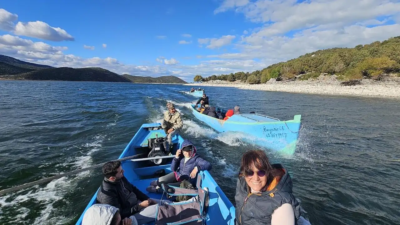 - Beyşehir'de kayıklarla ulaştıkları adada keşif yaptılar!
