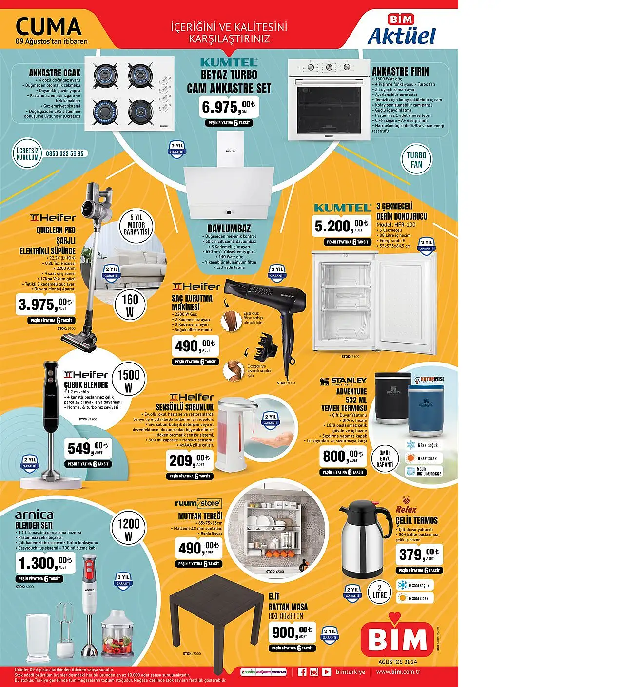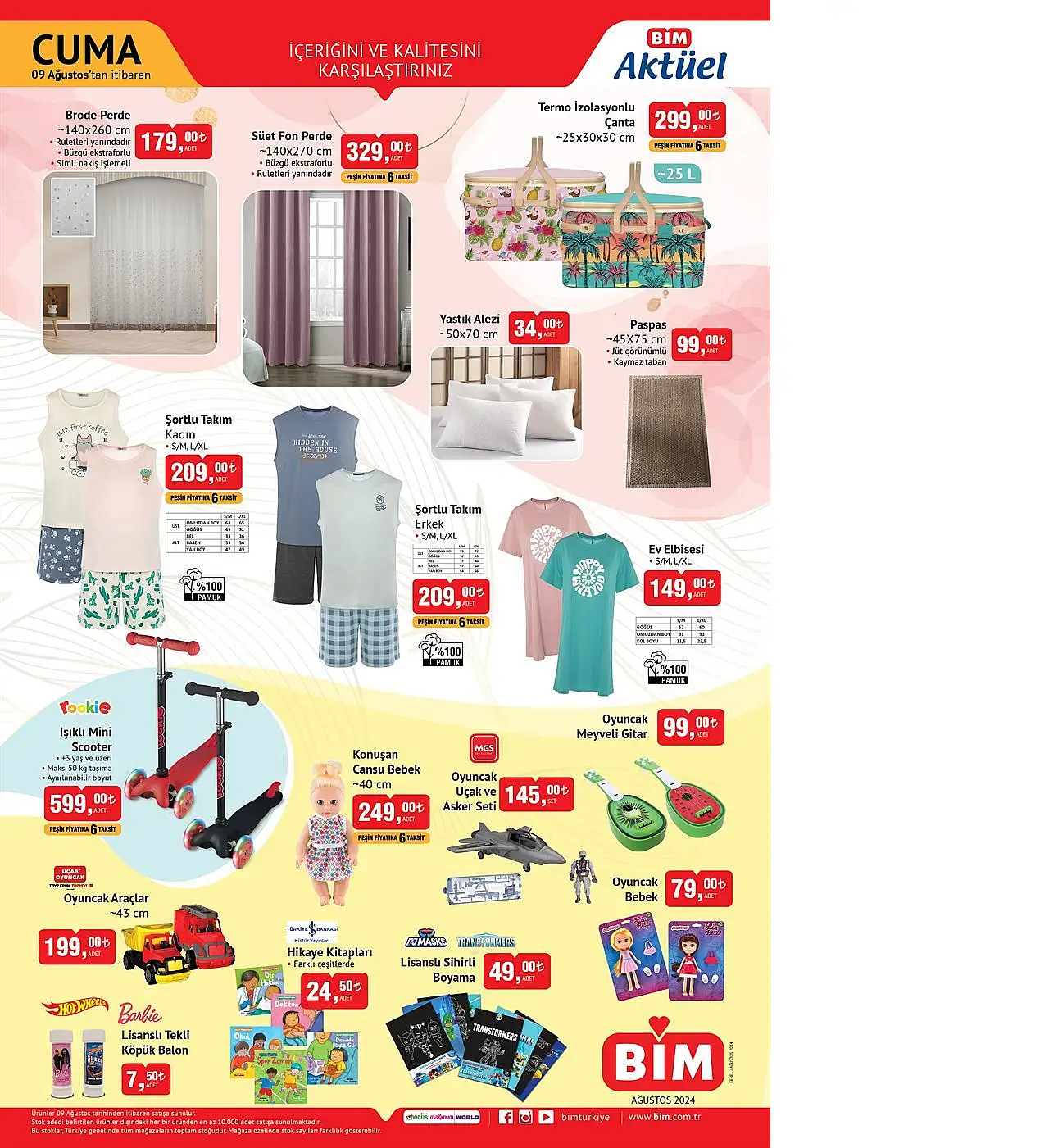 BİM Marketler Zinciri her hafta indirimli aktüellerini yayınlamaya devam ediyor.Son olarak 9 Ağustos 2024 Cuma tarihli aktüel de yayınlandı.