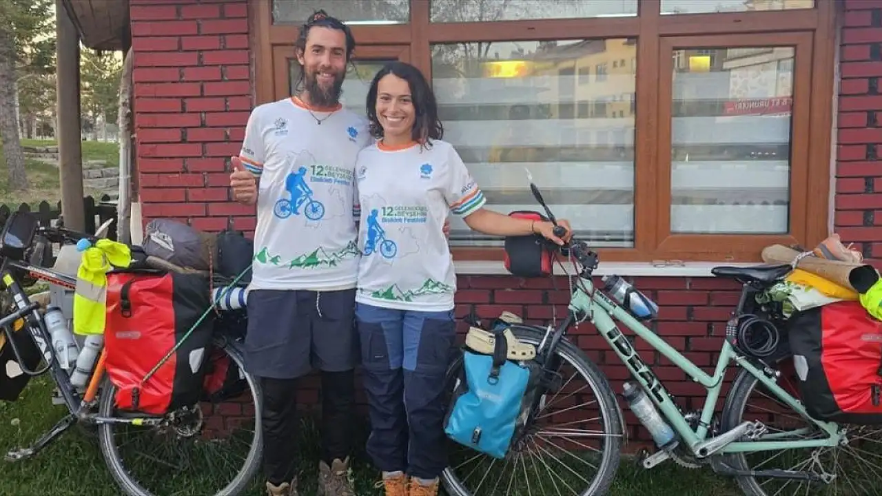 - Bisiklet tutkunu Yunan çift, Beyşehir'de mola verdi