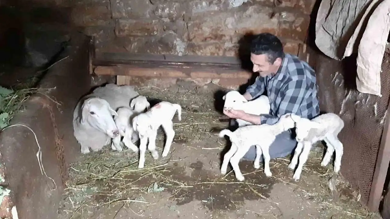 Bolu'da bir koyun tek seferde beşiz doğurdu