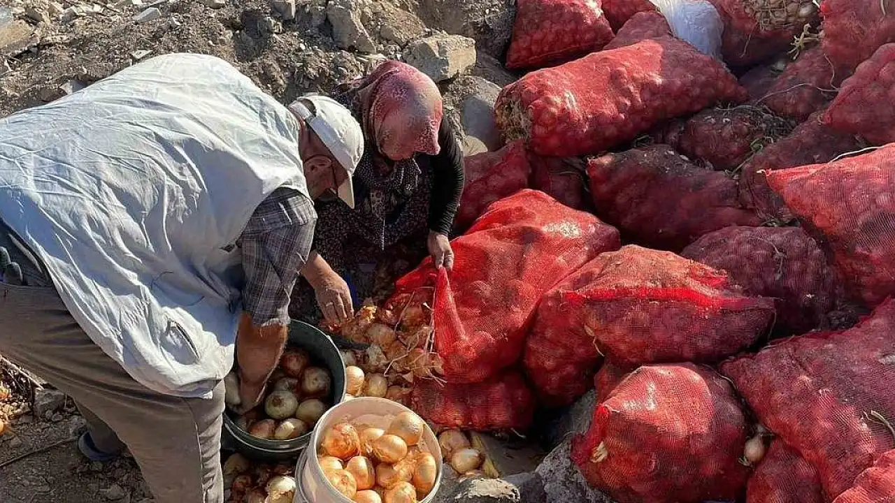 Boş araziye dökülen tonlarca soğanı vatandaşlar evlerine götürdü