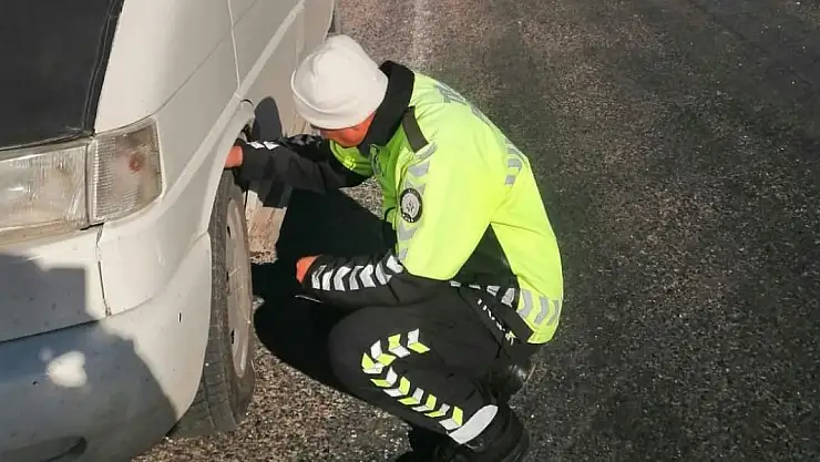 Kış aylarında güvenli sürüş ve meydana gelebilecek trafik kazalarının önlenmesine yönelik ticari araçlarda 1 Aralık'ta başlayan kış lastiği uygulaması çerçevesinde Bozkır İlçe Emniyet Müdürlüğü Trafik Denetleme Büro Amirliği görevlileri tarafından deneti