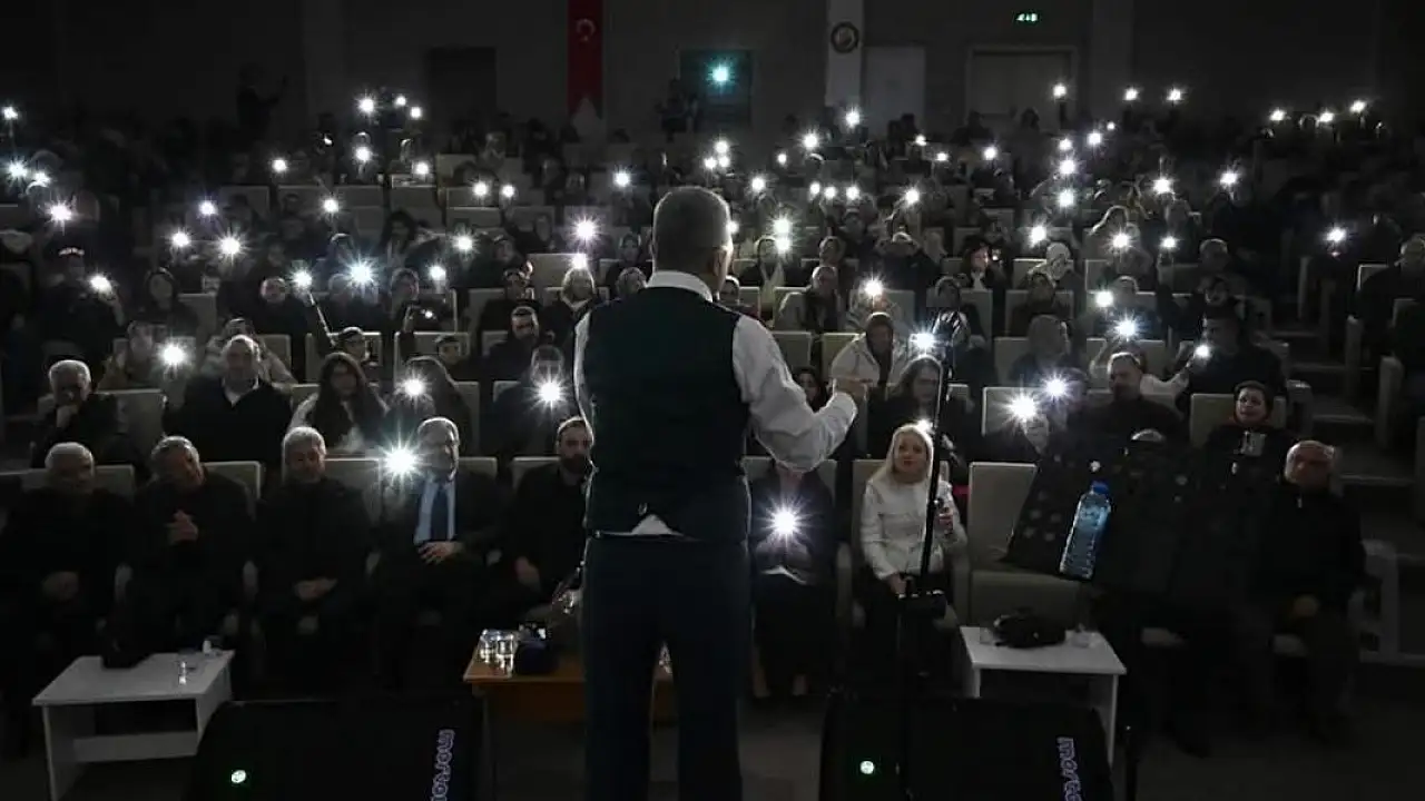 Program sonunda Belediye Başkanı Hasan Ustaoğlu ve eşi, sanatçı Adem Kazan'a çiçek takdim etti.
