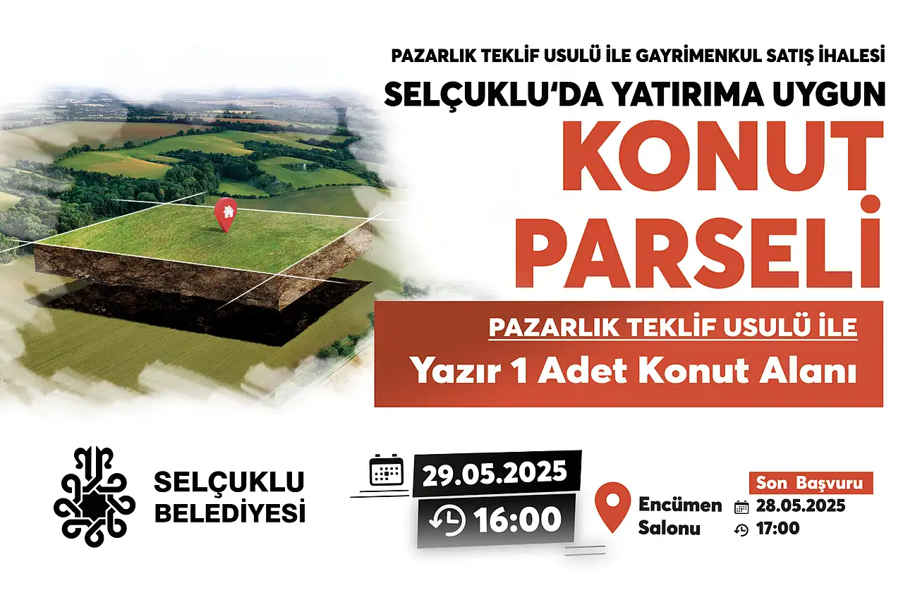 olarak ayrılan 1 adet parsel, Selçuklu Belediyesi tarafından yatırımcılara duyuruldu.