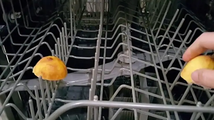 Bir bardak limon suyunu bulaşık makinesinin parlatıcı bölümüne dökün ve kapağını kapatın.