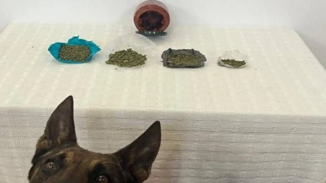 Denizli'de jandarma ekipleri düzenledikleri operasyonda şüpheli şahsın çantasındaki kavanozda 111 gram esrar ele geçirdi.