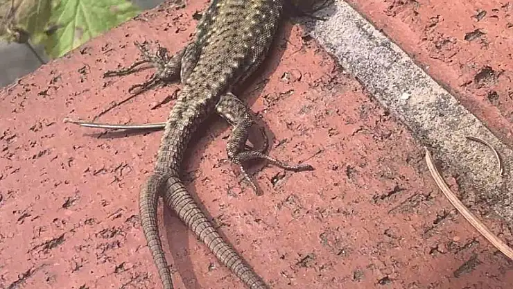 Sakarya'nın Akyazı ilçesinde turistik gezi yapan bir vatandaş, 2 kuyruğu bulunan kertenkeleyi görünce hayretler içerisinde kaldı. Kertenkele bir anda gözden kaybolurken vatandaş, o anı cep telefonu kamerasıyla kaydetti.