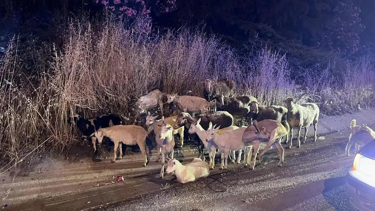 Keçilerin çevre yolunda görüldüğü ihbarları üzerine bölgeye giden çok sayıda polis ekibi keçileri ve başlarında bekleyen çoban köpeğini Esentepe Mahallesi Çorlu Çevre Yolu üzerinde buldu.
