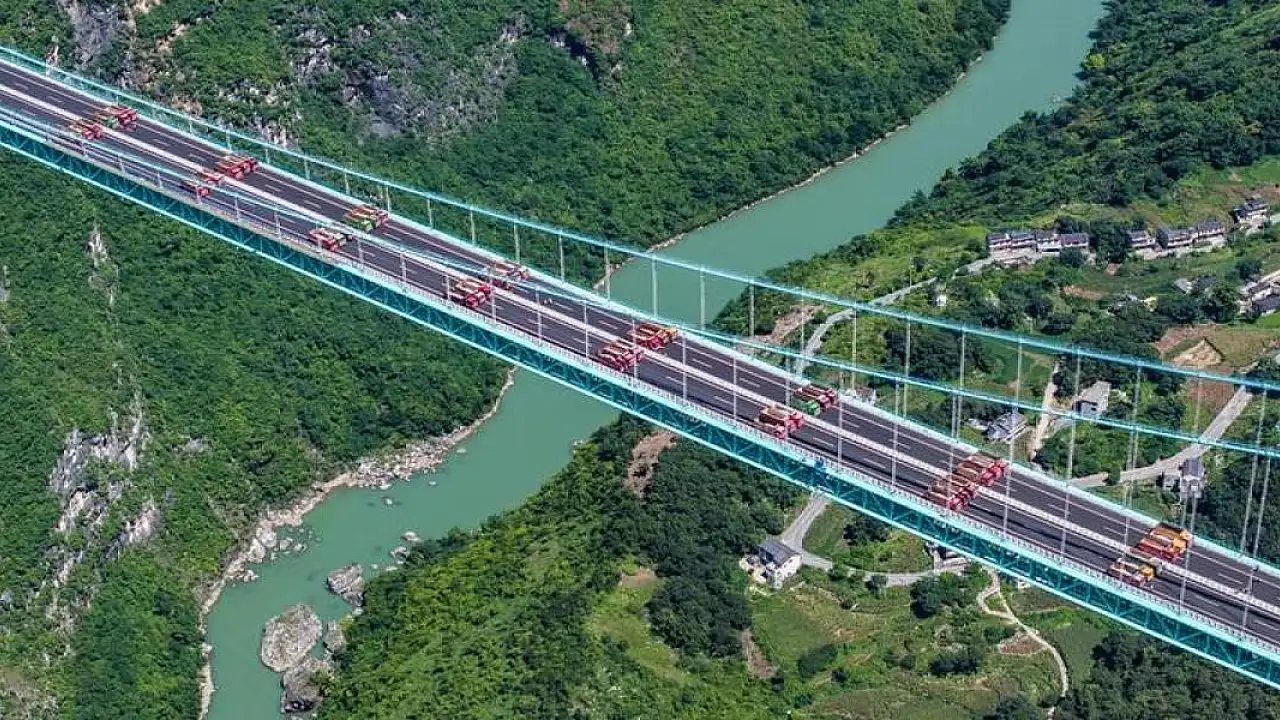 'Huajiang Kanyon Köprüsü', ana açıklık ve yerden yüksekliği ile hem yatay hem de dikey olarak dünya en büyük köprüsü olma ünvanını elde etti