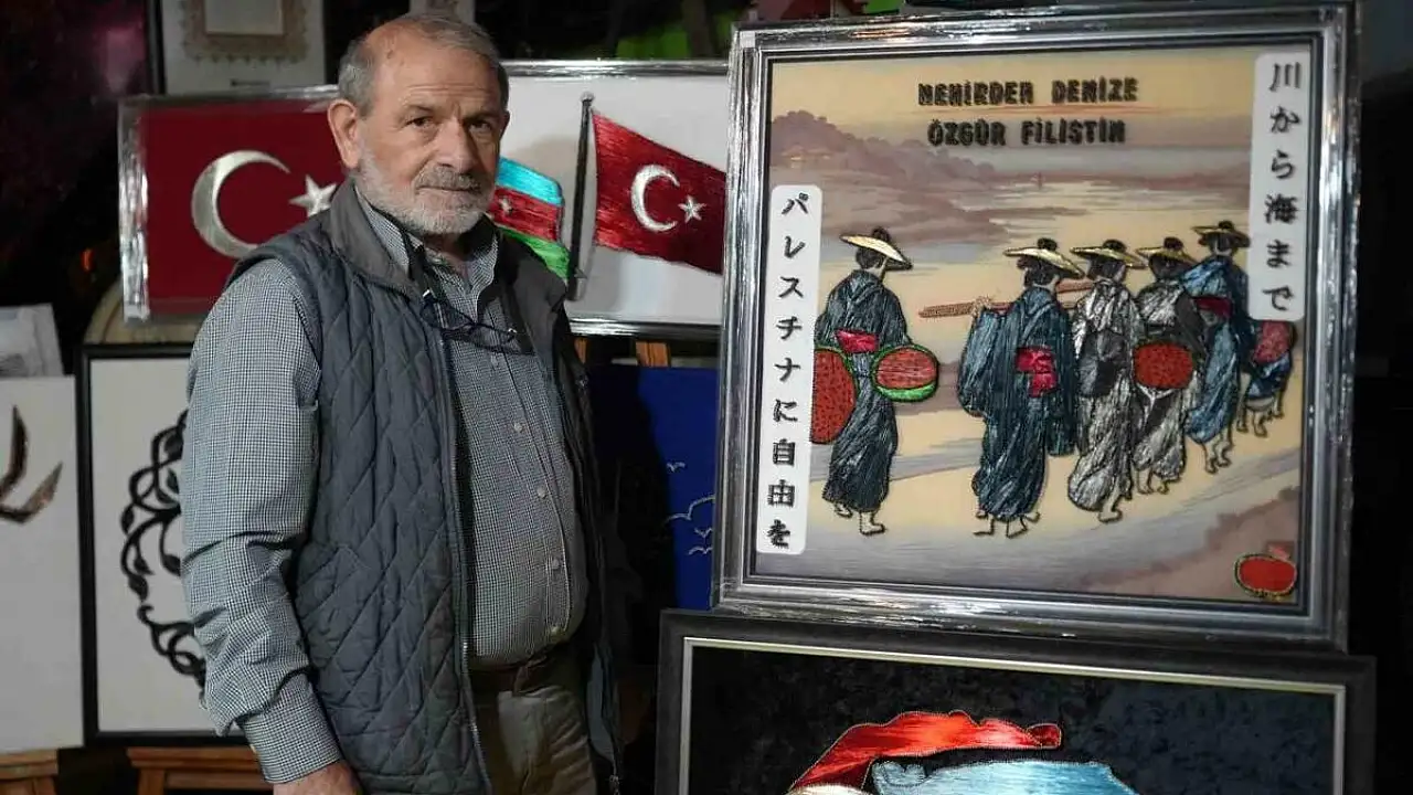 Japon bir öğretmenin Filistin için yaptığı resmin hikayesini aktaran Tekoğul, "Hiroşima’ya ait bir temadan yola çıkılarak hazırlandı. Japon bayan hoca Müslüman olmuş. ’Filistin için ne yapabilirim’ diye düşünmüş, resmin üzerinde Filistin’i sembolize eden ögeler, bayrak ve karpuz dilimleri yerleştirerek ’Nehirden denize özgür Filistin’ temalı bir çalışma hazırlamış" ifadlerini kaydetti.