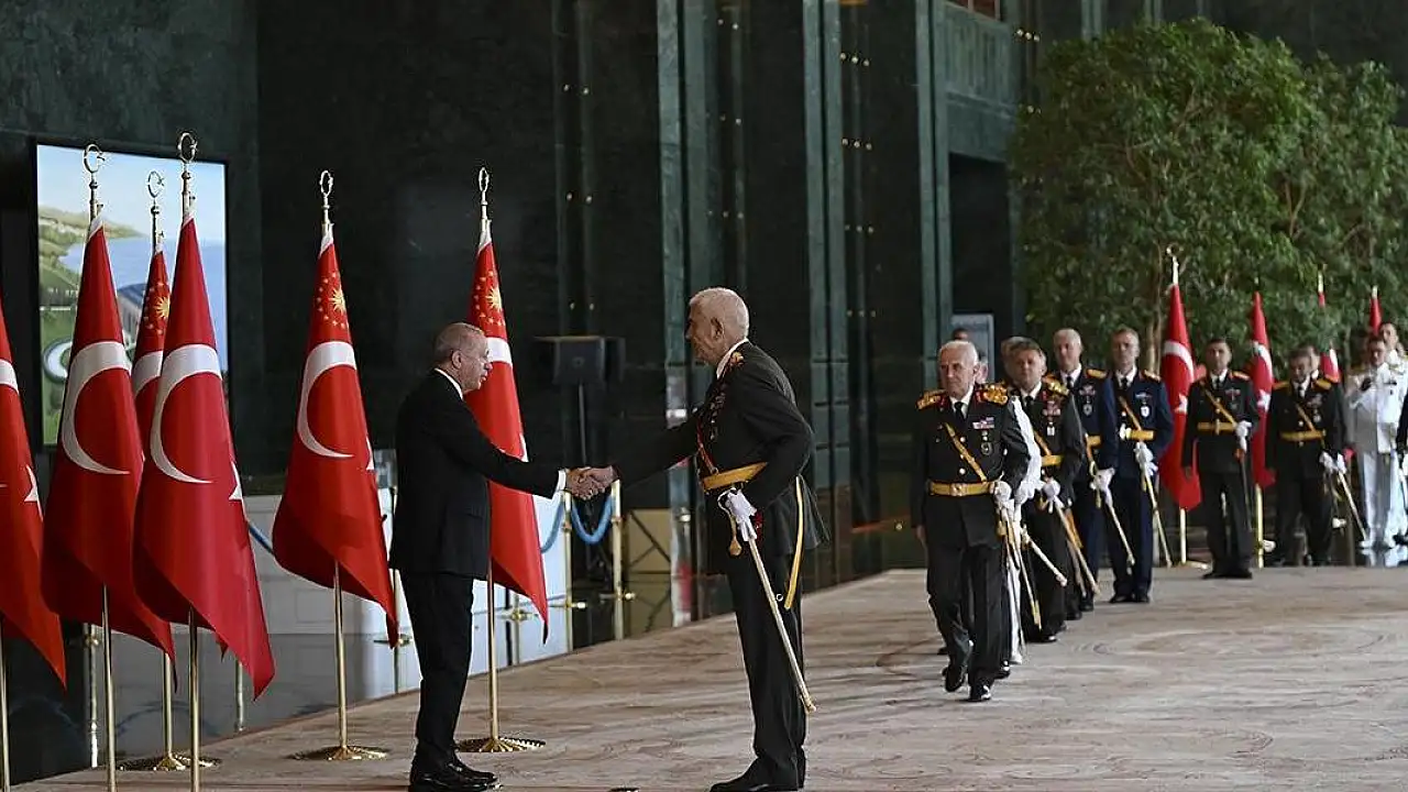 Cumhurbaşkanlığı Muhafız Alayı Bandosu'nun marşlar seslendirdiği tören, başkentte görevli askeri personeli temsilen her rütbeden asker ile sivil personelin Cumhurbaşkanı Erdoğan'a tebriklerini sunmasıyla sona erdi.