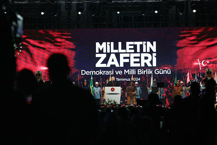 Cumhurbaşkanı Erdoğan, "Kimse kusura bakmasın adı, sanı, unvanı ne olursa olsun her kim 15 Temmuz'a laf söylüyorsa, hedefi millettir, demokrasidir, milletin sarsılmaz iradesidir." ifadelerini kullandı.