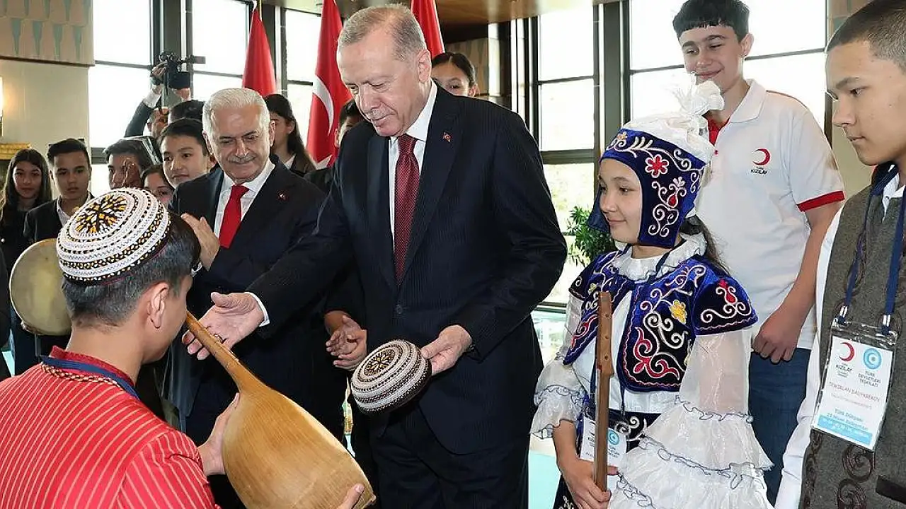 Cumhurbaşkanı Erdoğan, 23 Nisan Ulusal Egemenlik ve Çocuk Bayramı dolayısıyla Cumhurbaşkanlığı Külliyesi'nde Türk Dünyası Çocukları ve TRT Çocuk Şenliği Konuk Çocukları kabul etti.