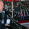 Kuzey Kıbrıs'ın hürriyeti için "Allah Allah" nidalarıyla omuz omuza çarpışan kanları kanlarına karışan Mehmetçikleri ve Mücahitleri de burada bir kez daha kemali edeple yad ediyorum. 20 Temmuz Barış ve Özgürlük Bayramımızı yürekten tebrik ediyorum. Burada öncelikle bir hususu ifade etmek isterim; Bugün tıpkı yarım asır önce olduğu gibi yine tek yüreğiz, tek bileğiz. Anavatan Türkiye ve Kuzey Kıbrıs Türk Cumhuriyeti olarak sırt sırtayız. İktidar muhalefet ayrımı olmadan bugün burada bulunmamız Türkiye'nin Kıbrıs davasına verdiği önemin göstergesidir. Bugün burada bulunmamız Türkiye'nin ve Türk milletinin Kıbrıs davasına verdiği önemin göstergesidir. Kuzey Kıbrıs bizim göz bebeğimizdir. Canımızdan bir parçadır. Burası bize sadece şehitlerimizin değil, aynı zamanda Hazreti Osman'ın sahabinin bu toprakları fetheden kahraman ecdadımızın da emanetidir. İnşallah bu emanete sıkı sıkıya sahip çıkmayı sürdüreceğiz.