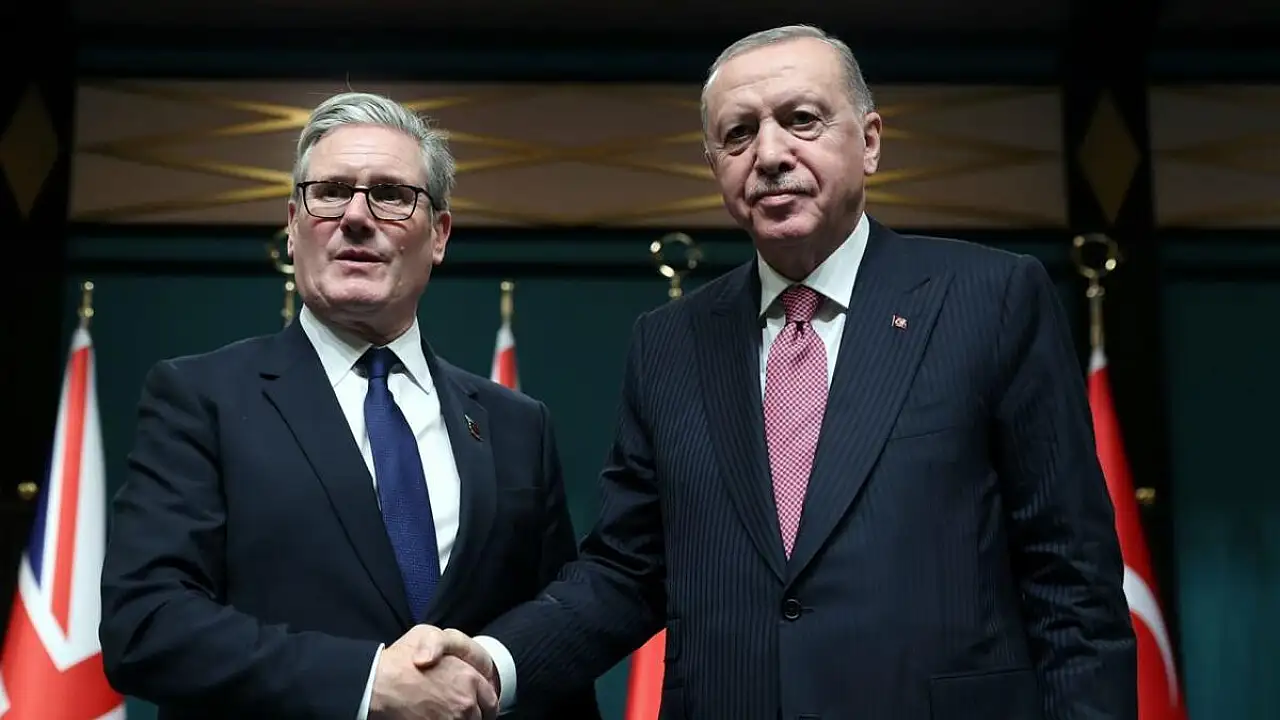 Cumhurbaşkanı Recep Tayyip Erdoğan, baş başa görüşme ve heyetler arası çalışma yemeği sonrası Birleşik Krallık Başbakanı Keir Starmer ile Cumhurbaşkanlığı Külliyesi'nde ortak basın toplantısı düzenledi. Cumhurbaşkanı Erdoğan, Birleşik Krallık Başbakanı Starmer'i ağırlamaktan büyük bir memnuniyet duyduğunu kaydederek, "Stratejik ortak ve müttefik ülkeler olarak ikili konuların ötesinde uluslararası gündemi meşgul eden birçok meselede kendisiyle yakın diyaloğumuz var. Bugünkü görüşmelerimizin odağını ticaret ve savunma ilişkilerimiz teşkil etti. Birleşik Krallık, ülkemizin en büyük ticaret ve yatırım ortakları arasında. Ticaret hacmimizi ilk etapta 30 milyar dolar ardından 40 milyar dolara çıkarma kararlılığındayız. Ekonomik ilişkilerimizi daha da güçlendirmek hususunda kararlıyız. Serbest ticaret anlaşmamızın güncellenmesi dahil birçok tedbiri ilgili kurum ve kuruluşlarımız alıyor. Üçüncü ülkelerde ortak yatırımlar yapma imkanları üzerinde de duruyoruz. Enerji ve savunma sanayi alanında yeni ortaklıklar kurmayı hedefliyoruz. Ayrıca, çok sayıda Birleşik Krallık vatandaşının Türkiye'yi ikinci evi olarak görmesinden büyük memnuniyet duyuyoruz. Bu potansiyeli en iyi şekilde değerlendirmek amacıyla aramızda ikili iş birliği çerçeve belgesi imzalanmasına yönelik müzakerelere de başladık. İnanıyorum ki bu adımlarla ilişkilerimizi ve stratejik ortaklığımızı çok daha ileri bir seviyeye süratle taşıyacağız" diye konuştu.