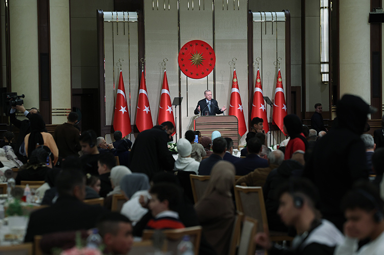 Burada konuşan Erdoğan, milletin ve Filistin halkının Ramazan-ı Şerif'ini tebrik etti. Gazze, Kudüs ve Batı Şeria'dakiler başta olmak üzere dünyanın dört bir yanında hayata tutunan Filistin'in yiğit evlatlarını selamlayan Erdoğan, tüm şehitleri, Filistin'in yürekli evlatlarını rahmetle, minnetle ve şükranla yad etti.