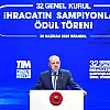 Cumhurbaşkanı Erdoğan, Haliç Kongre Merkezi'nde düzenlenen Türkiye İhracatçılar Meclisi (TİM) 32. Genel Kurulu ve İhracatın Şampiyonları Ödül Töreni'nde yaptığı konuşmada, Genel Kurul ile ödül alacak firmaların ve iş insanlarının başarılarının devamını temenni etti.