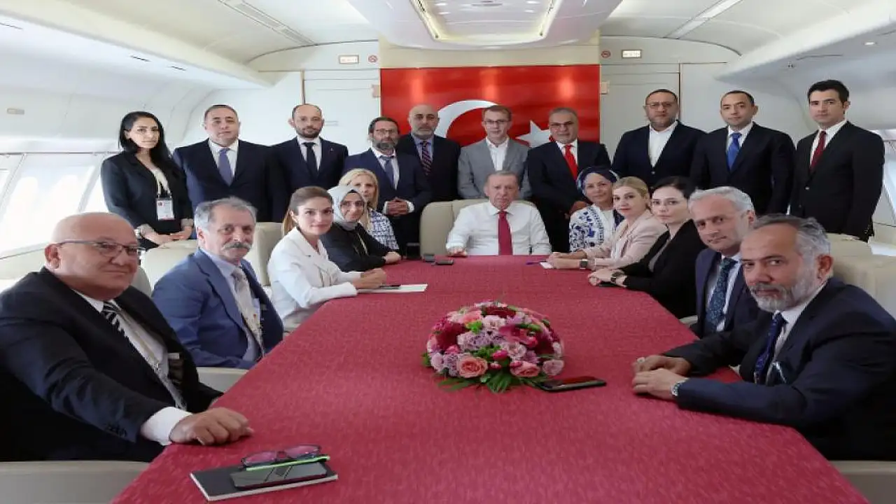 Cumhurbaşkanı Recep Tayyip Erdoğan, KKTC ziyareti dönüşünde uçakta gazetecilerle söyleşi gerçekleştirdi.