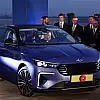 Cumhurbaşkanı Erdoğan, plakasına Cumhurbaşkanlığı forsu takılan Togg'un mavi renkli yeni modeliyle test sürüşü yaparken, araç hakkında bilgi aldı.