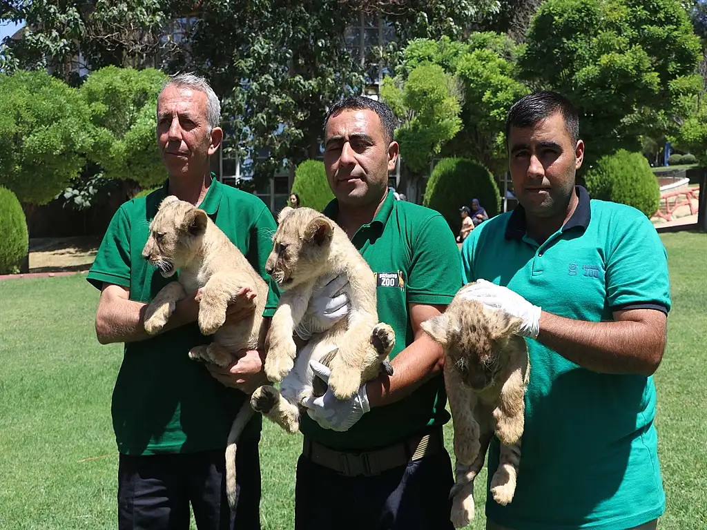 Büyükşehir Belediye Başkanı Fatma Şahin, yavru aslanları kucağına alarak sevdi. Ayrıca yavru aslanlara biberonlar ile süt verildi.