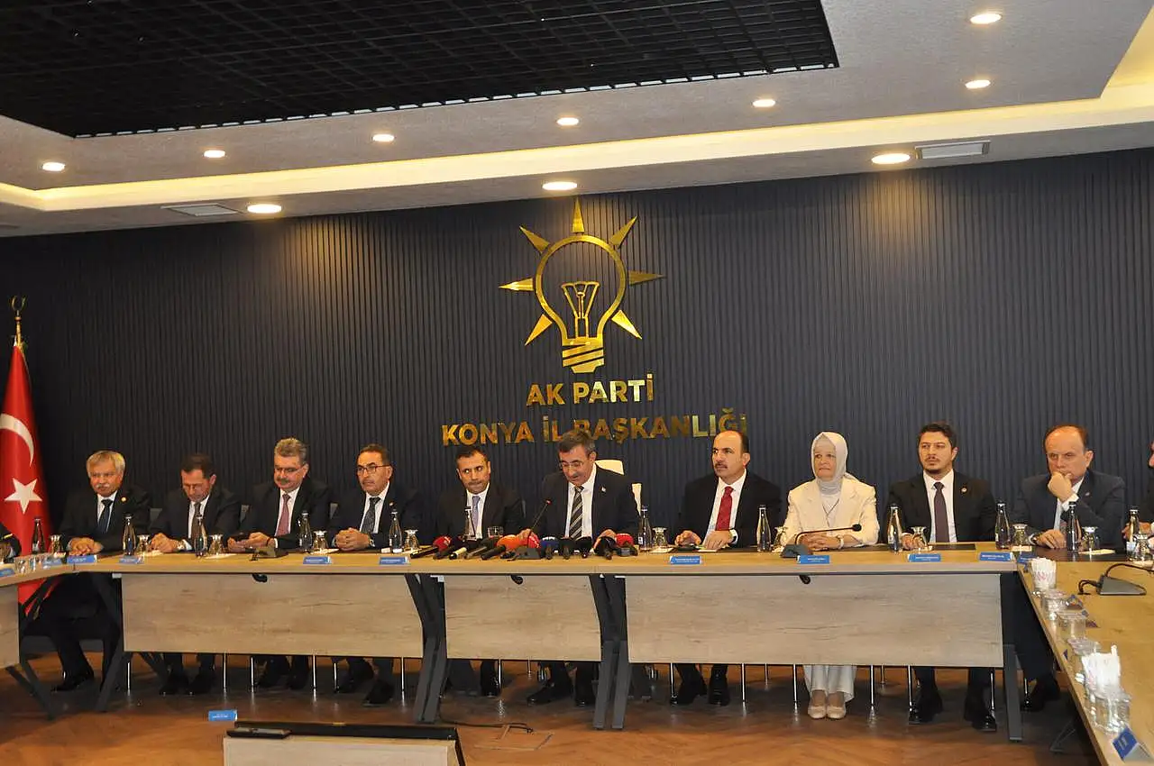 Konya’yı “Anadolu’nun gözbebeği” olarak tanımlayan Cumhurbaşkanı Yardımcısı Yılmaz, şehrin “Türkiye Yüzyılı” vizyonunun lokomotif kentlerinden biri olduğunu vurguladı. “Sayın Cumhurbaşkanımız Recep Tayyip Erdoğan adına hepinizi selamlıyorum. ‘Türkiye Yüzyılı Buluşmaları’ için bugün Konya’dayız” diyen Yılmaz, AK Parti’nin milletin beklentilerine en hızlı şekilde cevap veren bir siyasi hareket olduğunu, partinin her kademesinin sahada aktif olarak çalıştığını belirtti. Yılmaz, AK Parti’nin rotasını milletin belirlediğini, sahada vatandaşların taleplerini dinlemek için Konya’ya geldiklerini ifade ederek, “Konya, tarih boyunca medeniyetimizin önemli kalelerinden biri olmuş, asırlardır gönül coğrafyamızın merkezinde yer almış bir şehirdir. Bugün de ekonomideki başarısıyla bu güçlü mirası sürdürüyor” dedi. Cumhurbaşkanı Erdoğan liderliğinde son yüzyılın en parlak döneminin yaşandığını kaydeden Yılmaz, hükümetin ülkeyi kararlılıkla ileriye taşıma hedefinde olduğunu söyledi. Ülkenin huzurunu bozmak isteyen unsurlara karşı mücadele verdiklerini dile getiren Yılmaz, “Başta Gazze ve Filistin olmak üzere, Suriye’den Irak’a kadar pek çok bölgede bizleri bölmek isteyenler var. Bu oyunları bozmak için birlik ve beraberliğimizi pekiştirmemiz gerekiyor. Terörden arınmış bir Türkiye için omuz omuza olacağız” dedi.