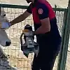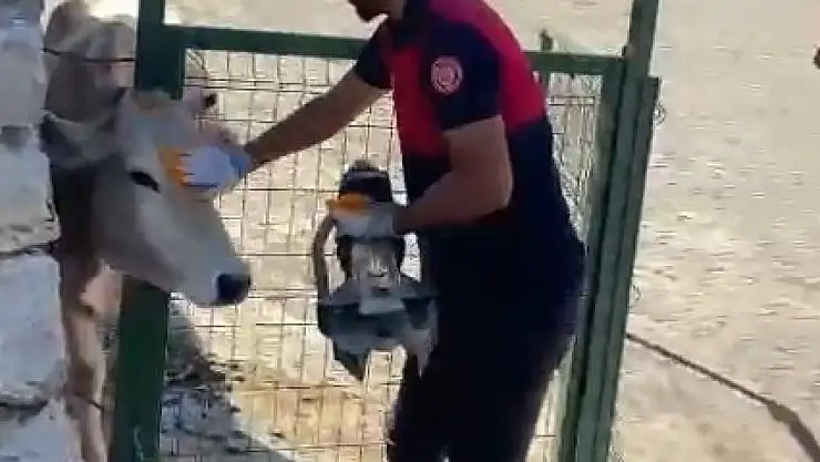 Bingöl'de başı demir kapıya sıkışan inek, itfaiye ekipleri tarafından kurtarıldı.