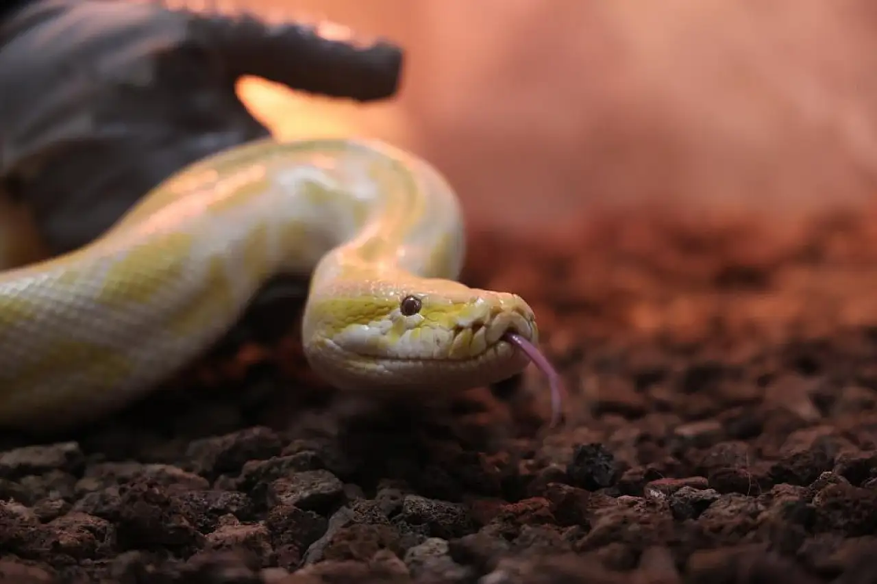 Denizli'de bir alışveriş merkezinde el konulan Albino Burma pitonu, Konya'da koruma altına alındı.
