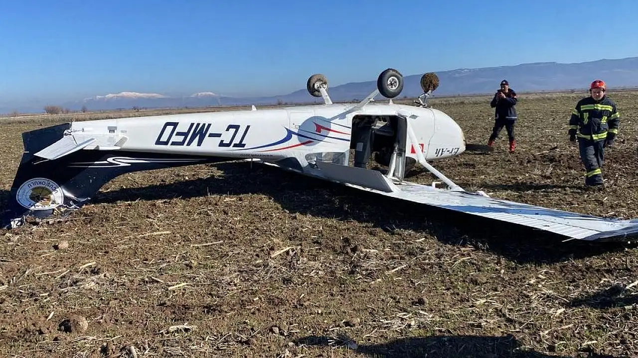 Denizli'de sert iniş yapan eğitim uçağı ters döndü