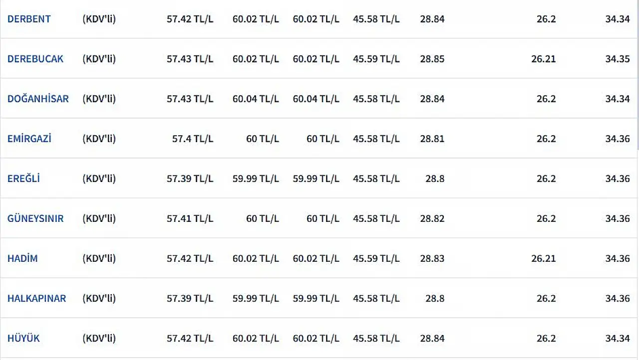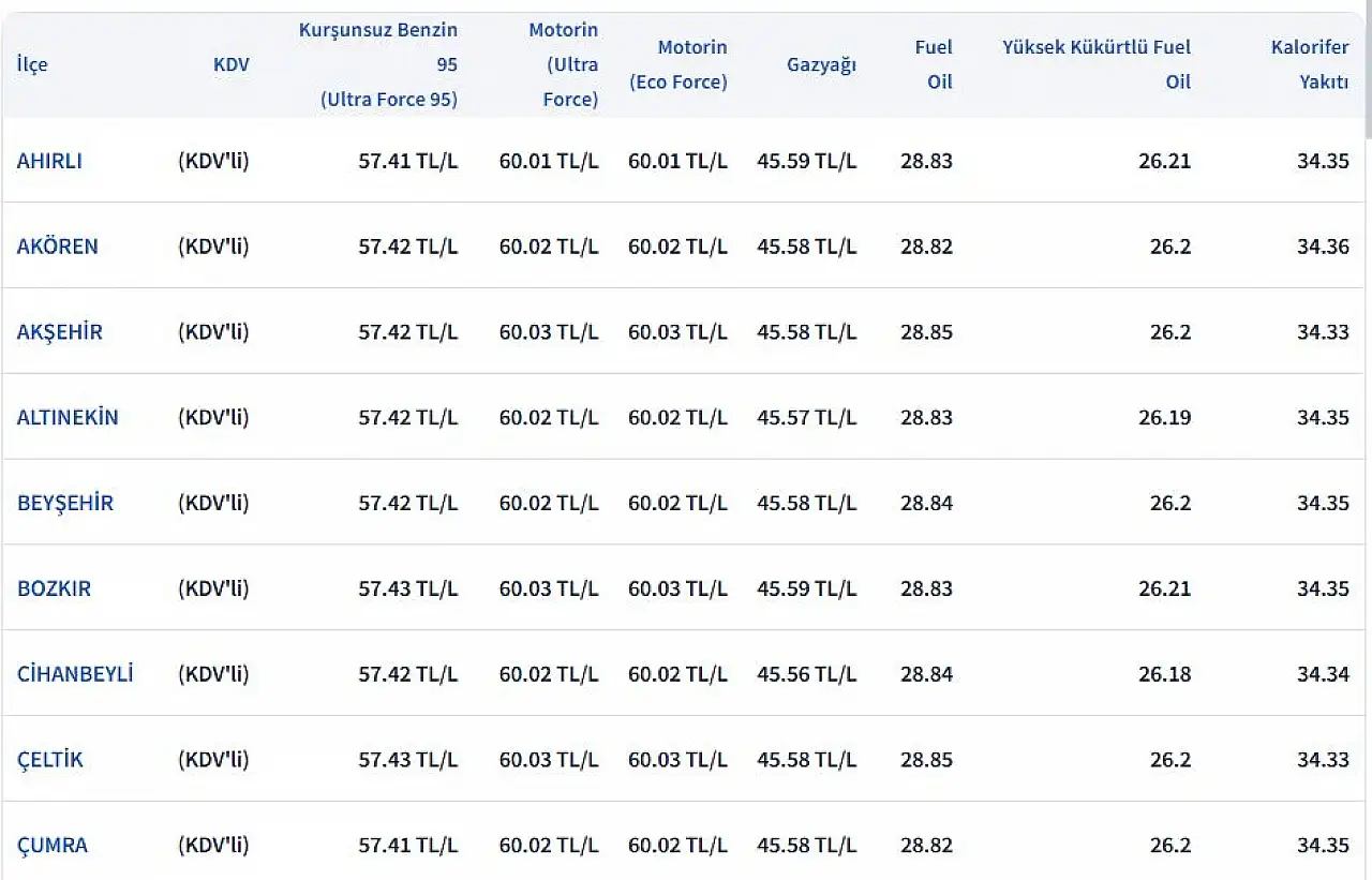 İŞTE KONYA'DAKİ GÜNCEL AKARYAKIT FİYATLARI