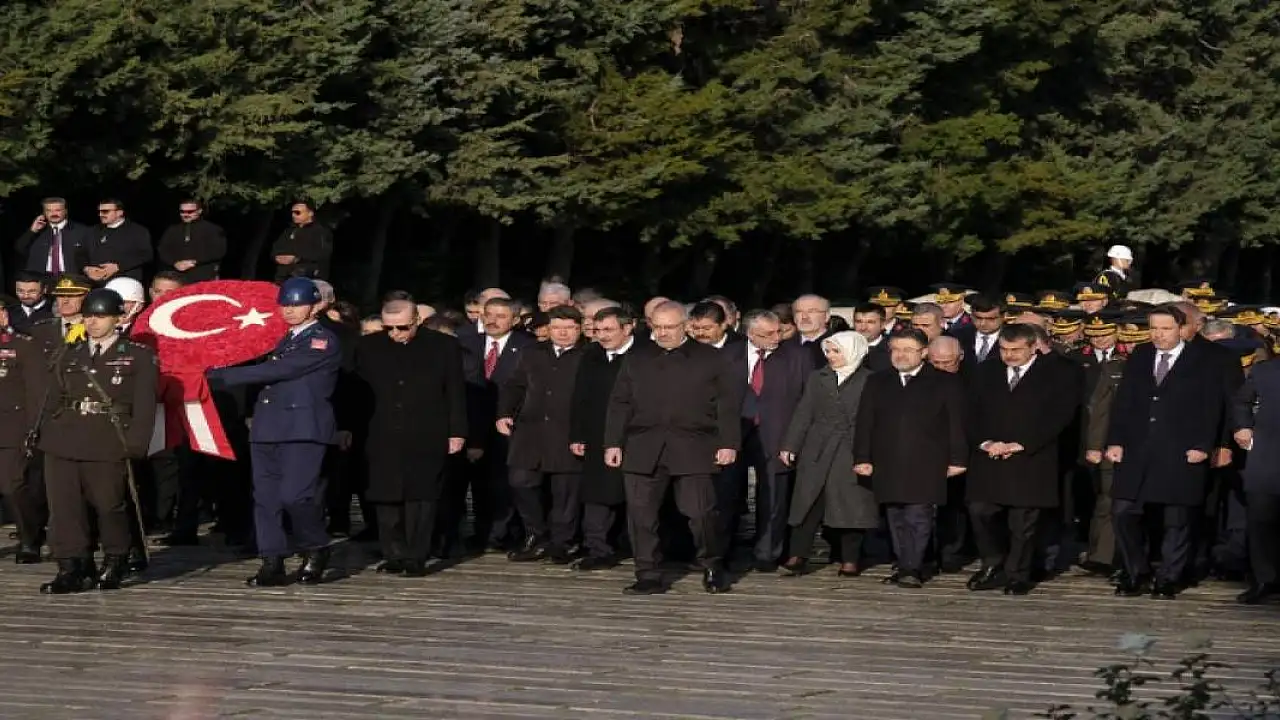 Anıtkabir'deki tören, devlet erkânını, CHP Genel Başkanı Özgür Özel, MHP Genel Başkanı Devlet Bahçeli, İYİ Genel Başkanı Müsavat Dervişoğlu'nun Aslanlı Yol'da yürüyüşü ile başladı. Cumhurbaşkanı Erdoğan başkanlığındaki heyet, Anıtkabir'de saat 09.05'te Atatürk'ün mozolesine çelenk koyarak saygı duruşunda bulundu. İstiklal Marşı'nın okunmasının ardından Cumhurbaşkanı Erdoğan, Misak-ı Millî Kulesi'ne geçerek Anıtkabir Özel Defteri'ni imzaladı ve şunları yazdı: "Aziz Atatürk, Ebedi aleme irtihalinizin 86. yıl dönümünde Zat-ı Âlinizi, bir kez daha rahmetle yâd ediyoruz. Şahsınızın ve şehitlerimizin emaneti olan Türkiye Cumhuriyeti'ni her alanda yüceltmek, güçlendirmek, etrafındaki krizlere rağmen istikrar ve güven içinde büyütmek için var gücümüzle çalışıyoruz. Yeniden büyük Türkiye hedefiyle ve Türkiye Yüzyılı vizyonuyla 85 milyon tek yürek, tek bilek olarak şanlı mazimizden daha aydınlık bir atiye uzanan kutlu yolculuğumuzu emin adımlarla sürdürüyoruz. Vatan topraklarının her karışında barışın, huzurun, adaletin, kalkınmanın ve kardeşliğin egemen olduğu bir Türkiye'yi inşa edene kadar durmadan, dinlenmeden yürüyeceğiz. Ruhun şad olsun!".