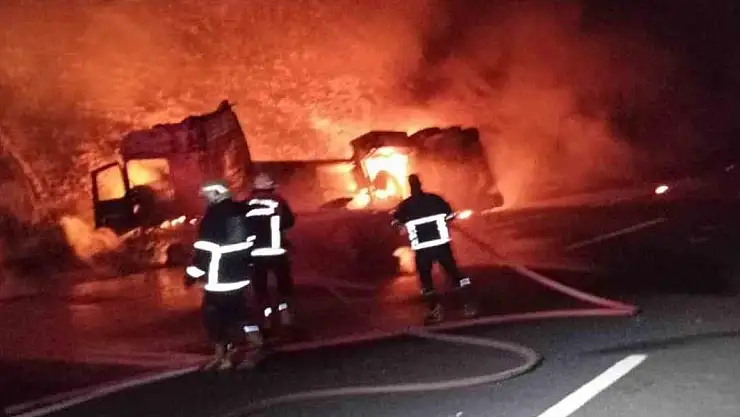 Şanlıurfa'da devrilen akaryakıt tankeri alev alev yandı. Yangın itfaiye ekiplerince kontrol altına alındı.