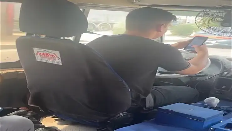 Seyir sırasında cep telefonu ile de oynayan şoför, tepki çekti. O anlar, bir yolcunun cep telefonu kamerasına yansıdı.