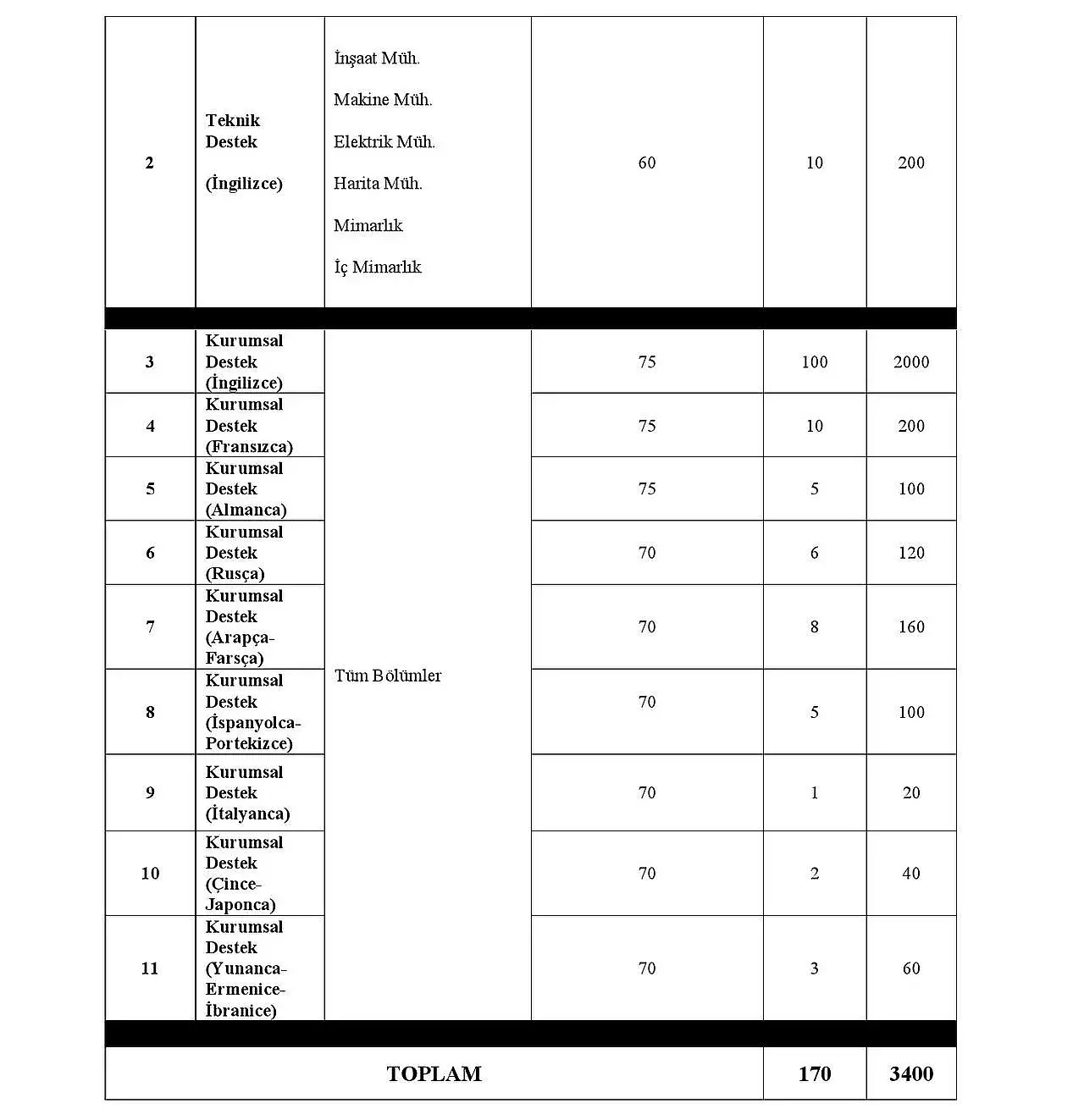ç) 2 no.'lu "Teknik Destek" kategorisinden yapılacak başvurular için; yurt içindeki üniversitelerin veya diploma denkliği YÖK tarafından onaylanmış olmak kaydıyla yabancı üniversitelerin lisans düzeyinde eğitim verilen fakültelerinin inşaat mühendisliği, makine mühendisliği, elektrik mühendisliği, harita mühendisliği, mimarlık veya iç mimarlık bölümlerinden mezun olmak, ayrıca İngilizceden en az 60 düzeyinde YDS/e-YDS puanına sahip olmak,