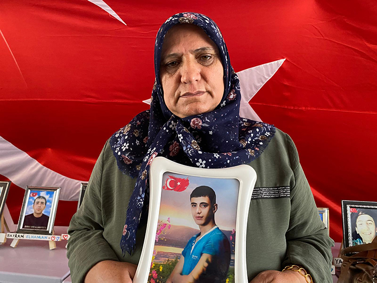 Annelerden Bedriye Uslu, 14 yıl önce kandırılarak dağa götürülen oğlu Mahmut için eylem yaptığını belirtti.