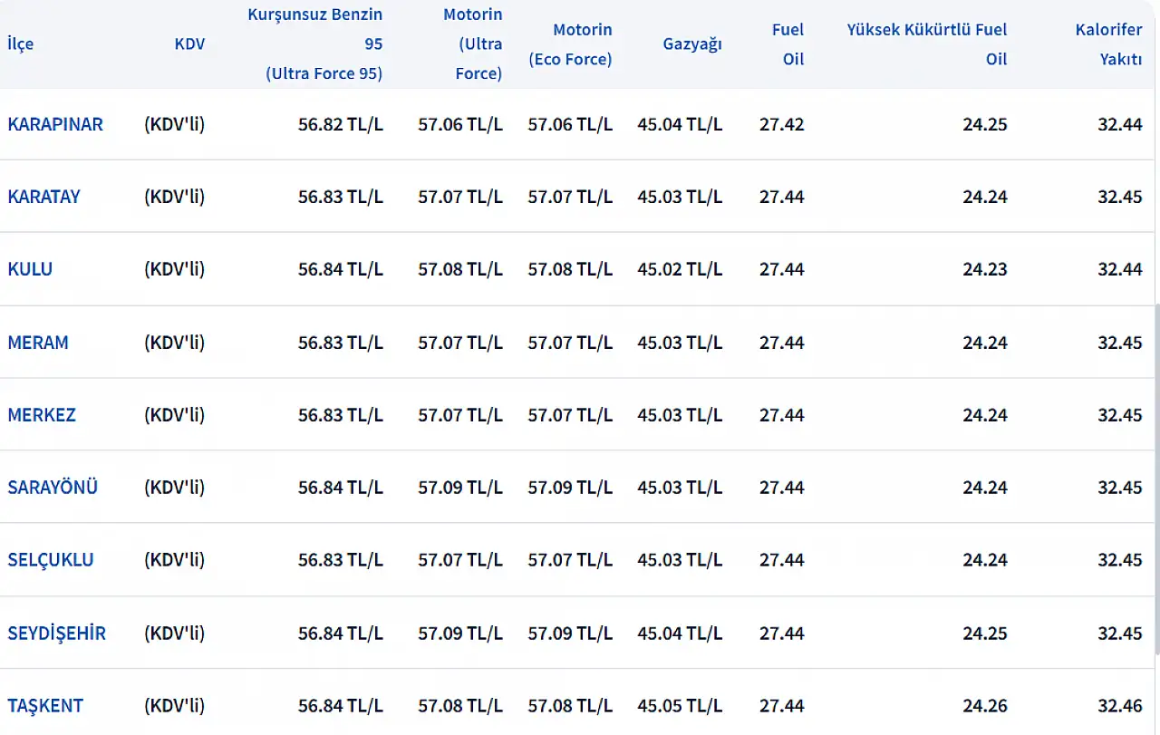 KONYA'DA GÜNCEL AKARYAKIT FİYATLARI