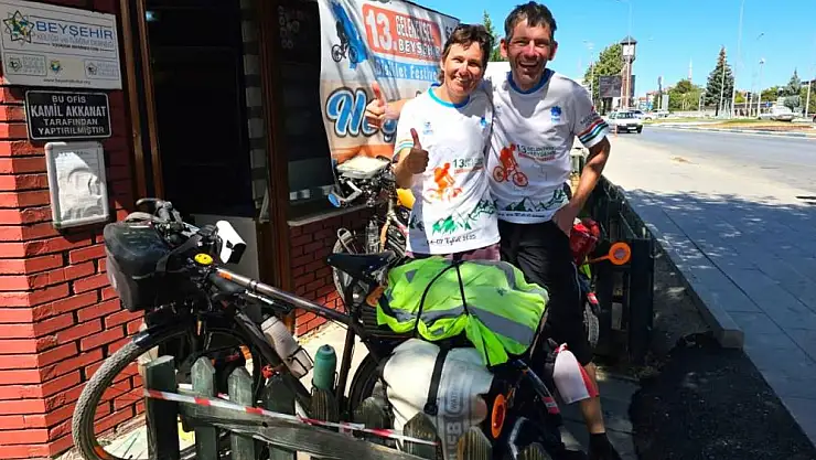 Avusturya’dan bisikletleri ile pedal çevirerek tura çıkan Thomas ve Andrea Pressl çifti, yol güzergahlarındaki Türkiye’ye geldi. Bisikletleriyle kilometrelerce pedal çevirdikten sonra Beyşehir’e de ulaşan bisiklet tutkunu çift, ilçenin misafiri oldu. Beyşehir’de konakladıkları süre içerisinde tüm ihtiyaçları Beyşehir Bisiklet Evi yöneticileri tarafından karşılanan Avusturyalı çiftin hedefinin rotalarında yer alan Çin’e kadar ulaşabilmek olduğu belirtildi.