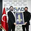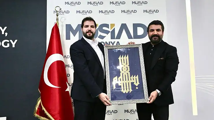 Programın sonunda Genç MÜSİAD Konya Şube Başkanı Mahmut Asım Elliiki, Dizayn VIP Kurucusu Erbakan Malkoç’a hediye takdim etti.